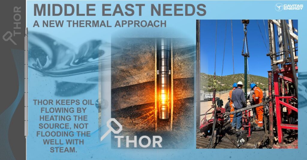 THOR offers a different approach, by applying controlled heat directly at the reservoir, operators can mobilise heavy and extra-heavy oil without the surface complexity of steam. This is particularly well suited to the Middle East.